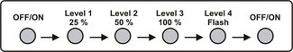 Stufe | Lichtstärke | Batterie-Kapazität |